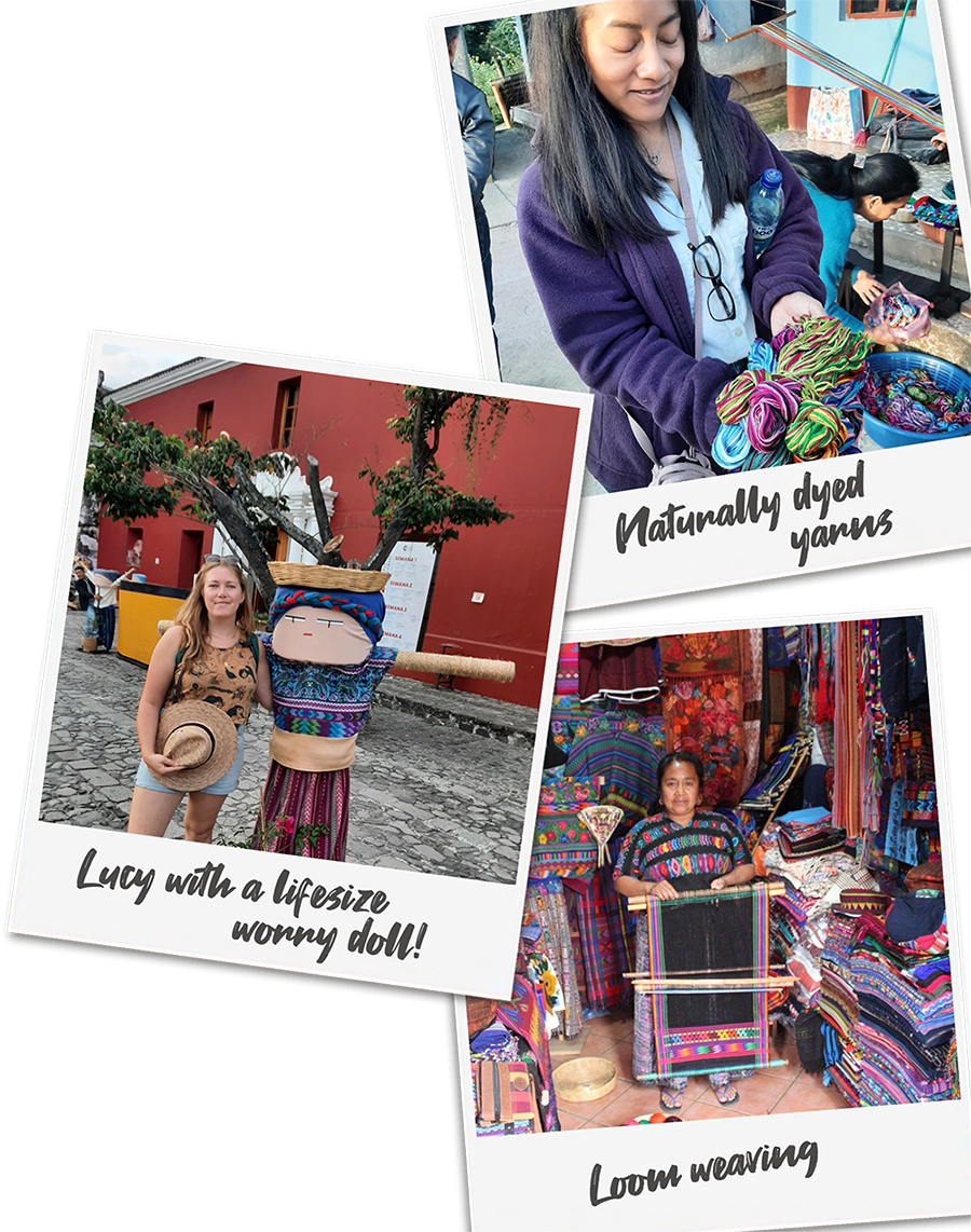 Guatemala is a lush green country steeped in a rich tradition of weaving. Women have hand-woven their clothing on a back strap loom for centuries and this tradition has been passed down through the generations to create richly embroidered ‘Huipils’ (blouses) and decorative belts (Fajas). They start with raw wool or cotton that they wash, comb and spin. They then stretch the threads along a warping board and attach it to the loom.