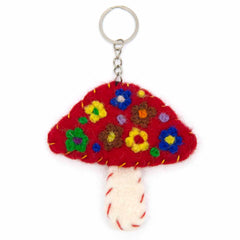 This fun felted fungi is a great way to keep all your keys together, you'll never lose them again because it's so colourful! Featuring flowers and attractive stitch detailing it also makes a great bag accessory.