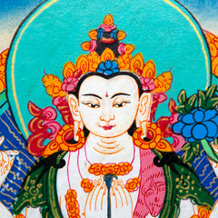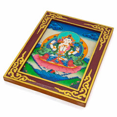 Thangka paintings are a traditional form of Buddhist art depicting deities, mandalas and scenes from the lives of enlightened teachers. A decorated wooden frame complements the intricate detail of the painting and reflects the colourful style of Himalayan art. Such frames may also be used for photographs or small prints.