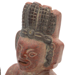This carved statue depicts a figure wearing a large corn headdress offering maize. These Mexican ceramics are handmade in the traditional 'barro' style and are fired in a small kiln at a small family-run pottery workshop in Texcoco, before being hand painted. Approx. 4cm × 14cm × 10cm