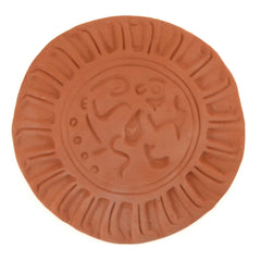 This clay stamp of a dancing monkey is inspired by the traditional stamps used by pre-Hispanic people. Original designs usually featured animals, such as this one, as well as abstract shapes, gods and mythical figures. The stamps were primarily used to decorate the skin or clothing with prepared dyes although they were also sometimes used to print patterns into pottery before it was set.