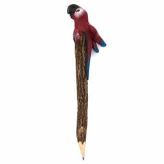 Made from an ingenious mix of sawdust and latex, this perky parrot has been mounted on a rustic 'log' pencil. It has been shaped and painted by hand in Northern Thailand.