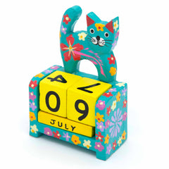 This fun, hand painted wooden calendar is great for cat lovers! The colourful cat calendar is perfect for your work or study space and makes a great desk-buddy too! Simply rotate the wooden blocks each day and use year after year.