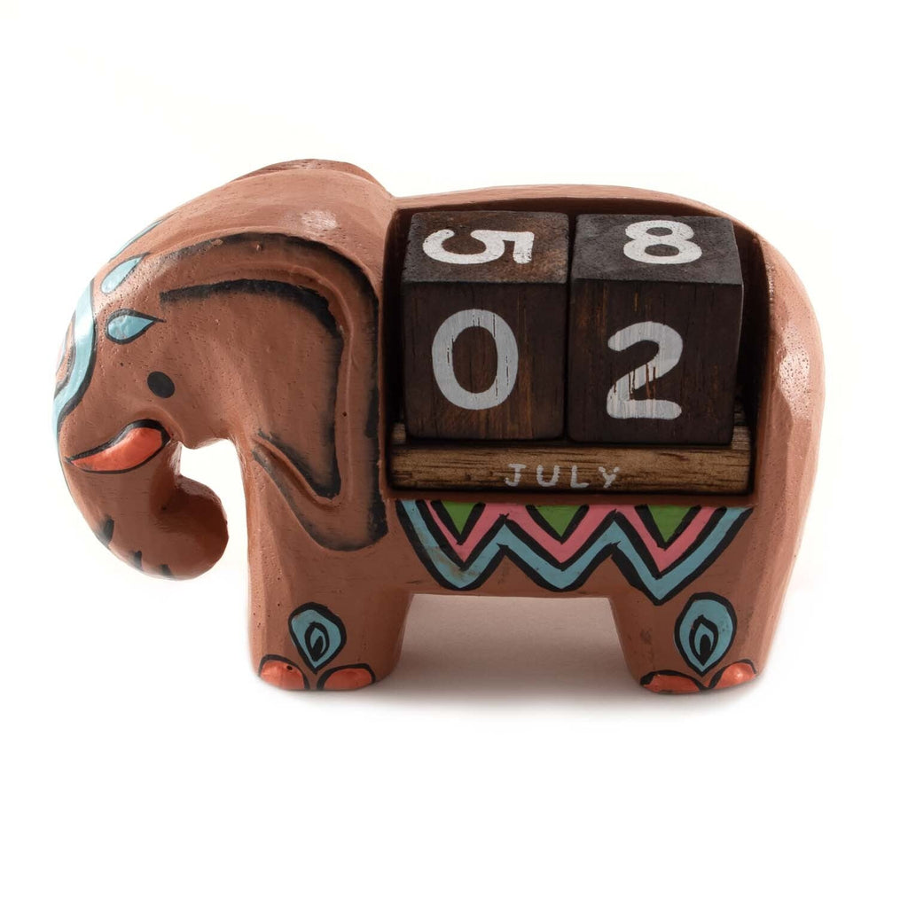 Fun, hand painted wooden elephant calendar. This cheerful chap is perfect for your work or study space and makes a great desk-buddy too! Simply rotate the wooden blocks each day and use year after year.