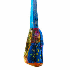 A bold hippy style bag featuring our popular Celestial and Mystic Sky designs. This spacious shoulder bag features a comfortable wide strap, two elasticated pockets on each end and a zipped pocket on the outside to pop your phone. It is fully lined and has a secure zip fastening.