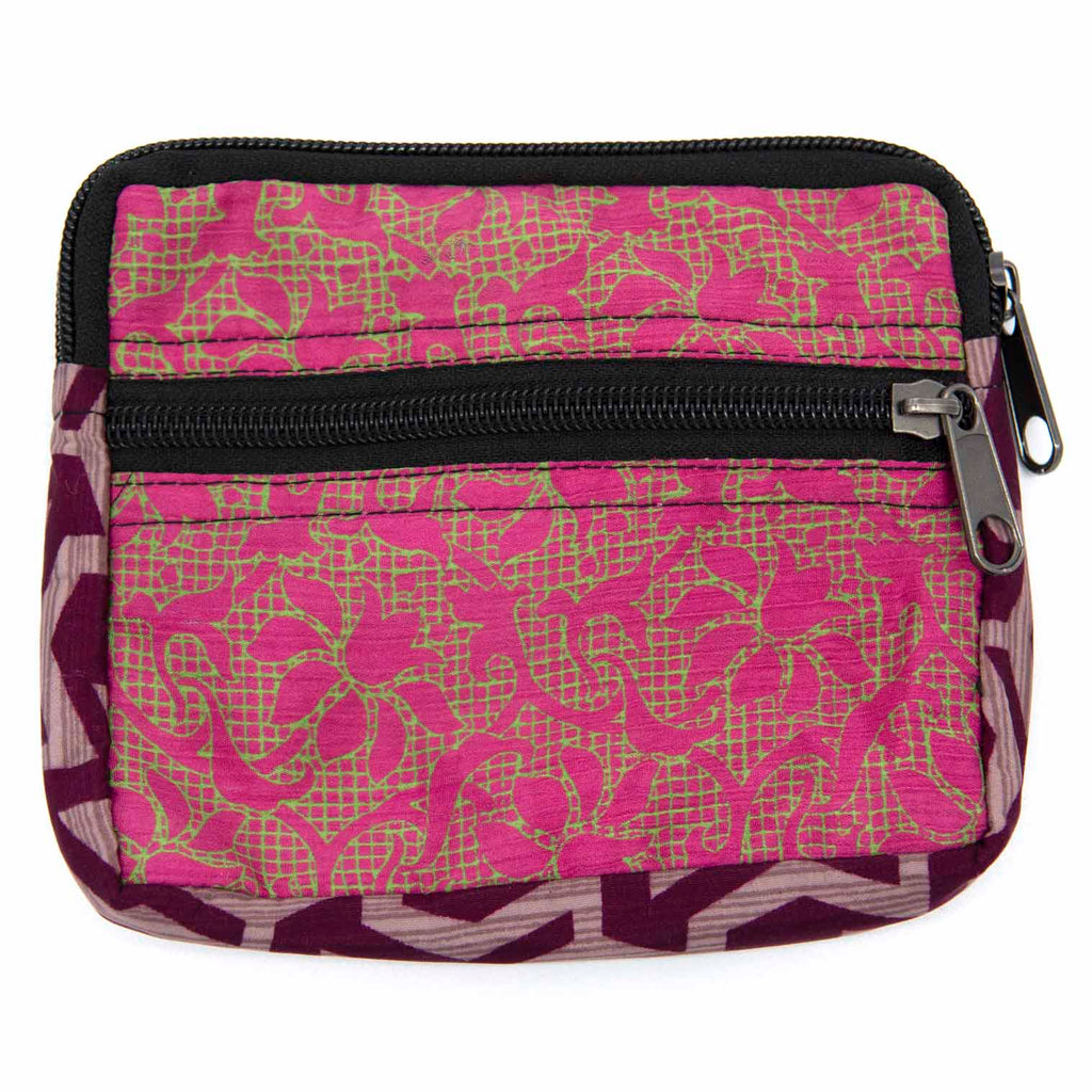 A small but practical padded purse that is a great size for carrying your cards and cash, and with two zipped compartments you can keep your valuables separate and secure. Each purse is made from beautiful recycled sari fabric and so each design is different.