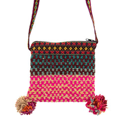These gorgeous sheepswool shoulder bags come in a variety of stunning colours and have two pom poms! They are handwoven in Peru and feature traditional manta fabric straps, a secure zip fastening and come fully lined.Mantas are hand woven from dyed sheep and alpaca wool on a backstrap loom and consist of two parts which are joined together with a patterned central seam.