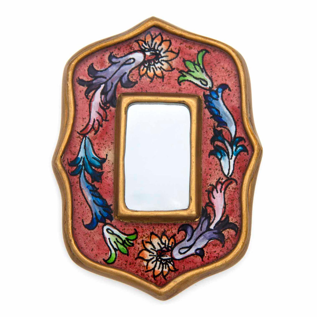 Beautifully hand crafted mirror made with a wooden base which is then hand painted and framed with glass for a gloss finish with a small piece of mirror. Designs and Sizes Vary Average: 9cm × 9cm