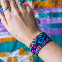 This popular product from Guatemala is a traditional hand woven knot craft. According to an old Central American indigenous story, bracelets are to be bought or made for another person. The recipient of a friendship bracelet is then entitled to a wish but must wear the gift until the woven cords eventually wear out and break. Only after the bracelet breaks naturally will the wish come true. All Colours and Patterns vary.