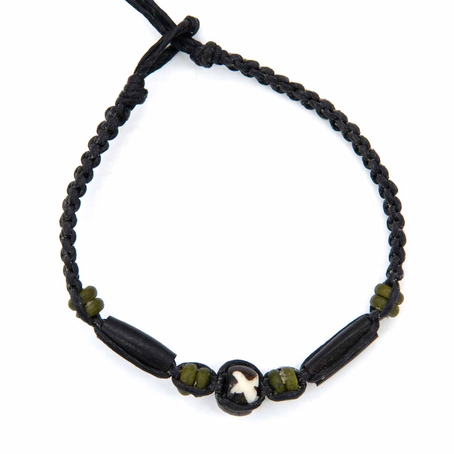 Knotted Cotton and Bone Bead Bracelet - X Black