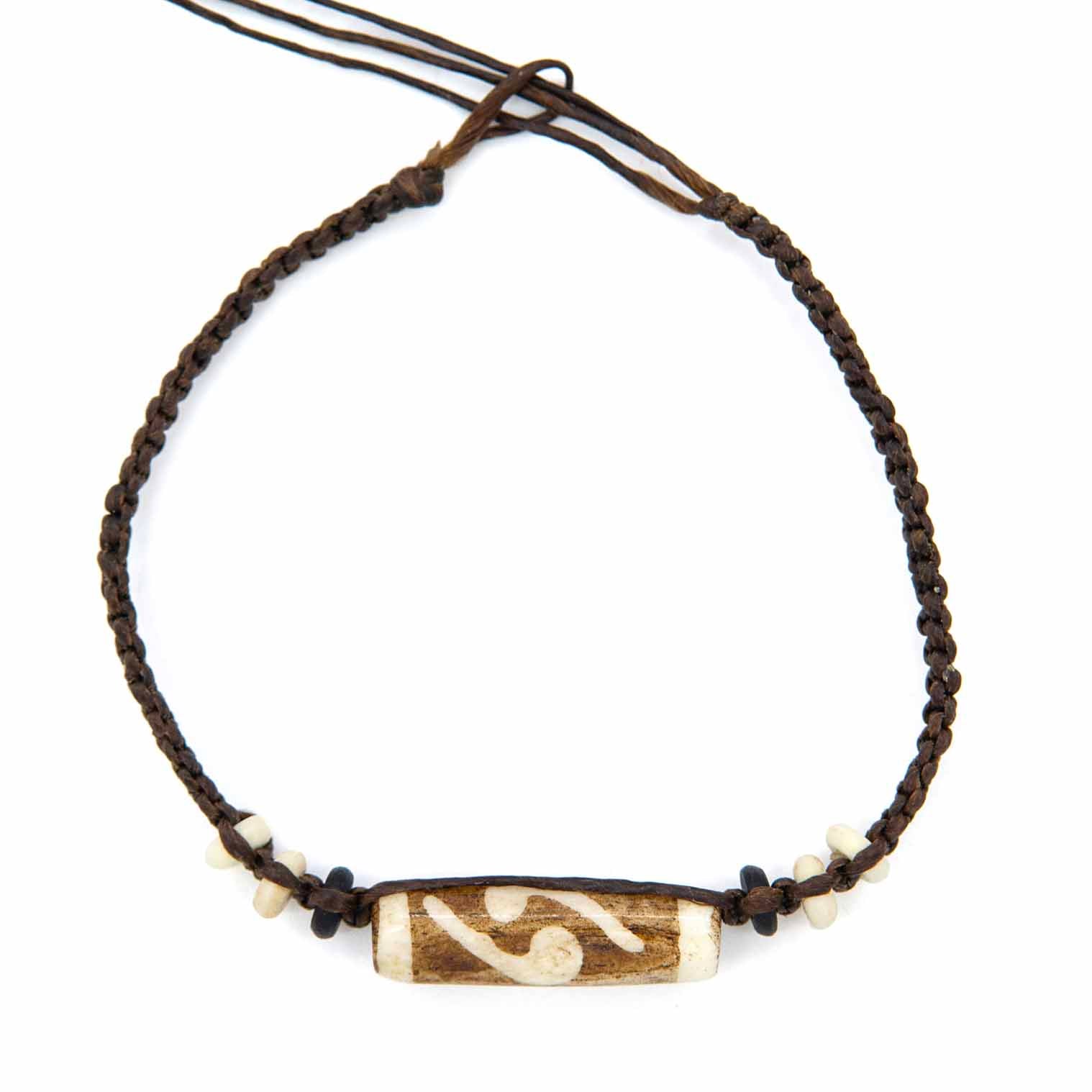 Knotted Cotton and Bone Bead Bracelet - Yin Yang Brown