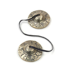 Tingsha are used by Buddhists during offerings, prayer and meditation. The cymbals produce a clear, high pitched ringing note when gently struck together. Apart from their ancient traditional use as an aid to meditation and in ritual music, tingshas are nowadays being used increasingly in sound therapy for the "space - clearing" of rooms. These tingsha are available in 3 intricate designs.