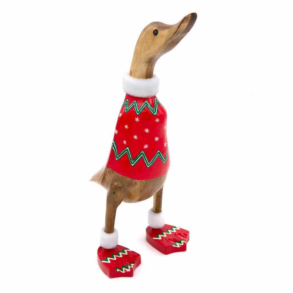 Lovingly handmade in Bali, this Christmas Jumper Duck is a Fair Trade piece, crafted by skilled artisans who continue traditional techniques with creativity and care. By choosing this ornament, you're supporting ethical craftsmanship while bringing home a unique, cheerful decoration full of quacky character for your Christmas celebrations.