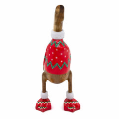 Say hello to the Christmas Jumper Duck, the snuggliest little waddler in town! With his delightful hand-painted festive jumper and matching fluffy slippers, he's ready to spread holiday cheer wherever he goes. Whether perched on your mantelpiece or nestled in your Christmas tree, he's sure to add a cosy, festive touch to your celebrations.