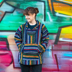 Baja hoodies are a classic staple of hippie style and festival wear. Originally made popular by surfers in California who brought them back from the Mexican Baja coast (hence the name). With their ties to the counter culture, and as they are so environmentally friendly, they have continued to be a popular hippy jumper choice.
