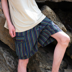 These super comfortable cotton shorts are made in our ever popular stripy Nepalese fabric. Cut in a slightly longer, board short style they are ideal for keeping chill on sizzling hot summer days.