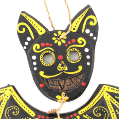 This enchanting Candy Skull Bat brings a touch of whimsical charm to your space, with it's candy skull patterns and dangly legs! Hand-carved from solid wood, it captures the festive spirit of Día de los Muertos and adds a delightful accent to your home, especially during the Halloween season.