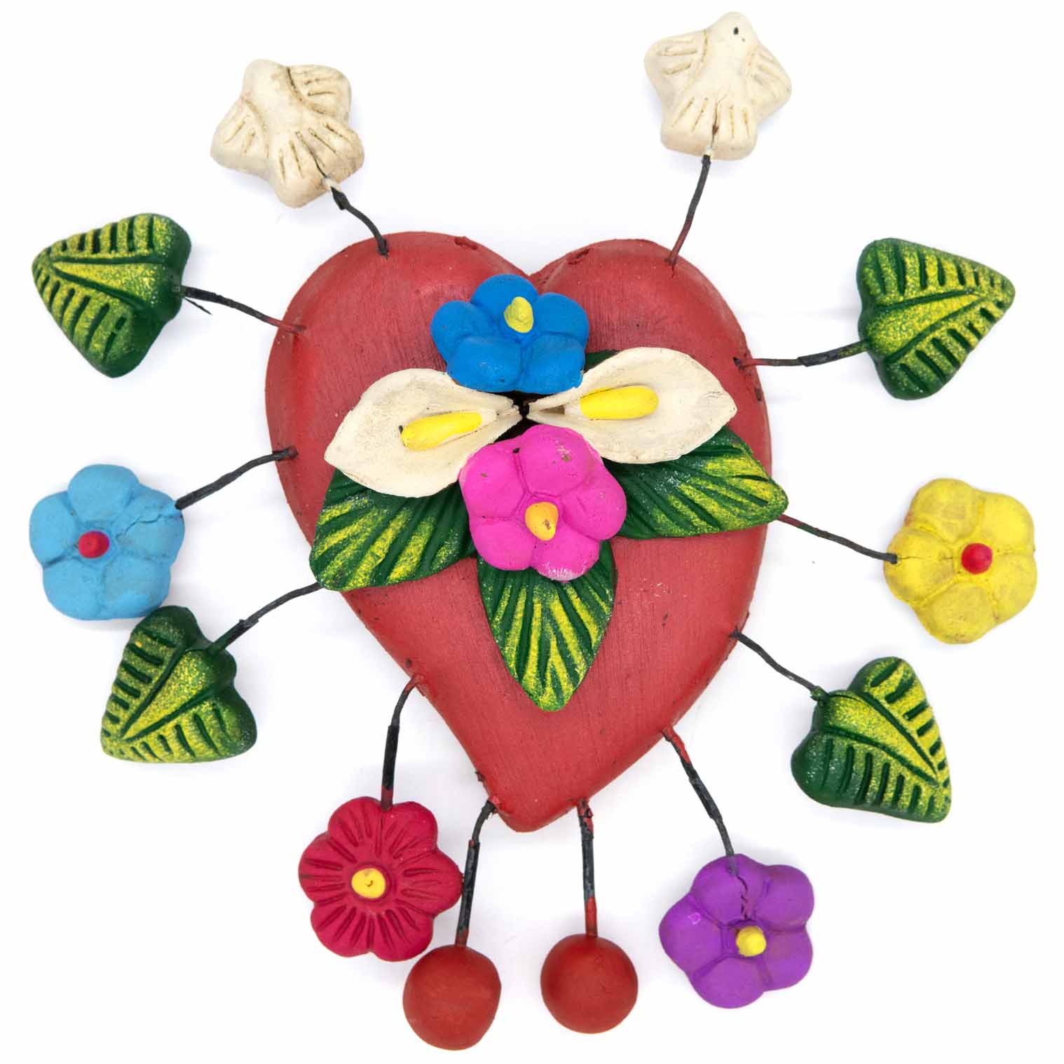 This bright wall plaque will win your heart! Surrounded by colourful ceramic flowers and white doves, the bold red heart takes centre stage in this wall plaque. It comes with two small holes to thread a string through and prepare it for display.