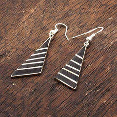 Beautiful earrings from Mexico. These eye catching triangle shaped earrings are available in three designs. Silver plated hooks with Alpaca metal alloy earrings.