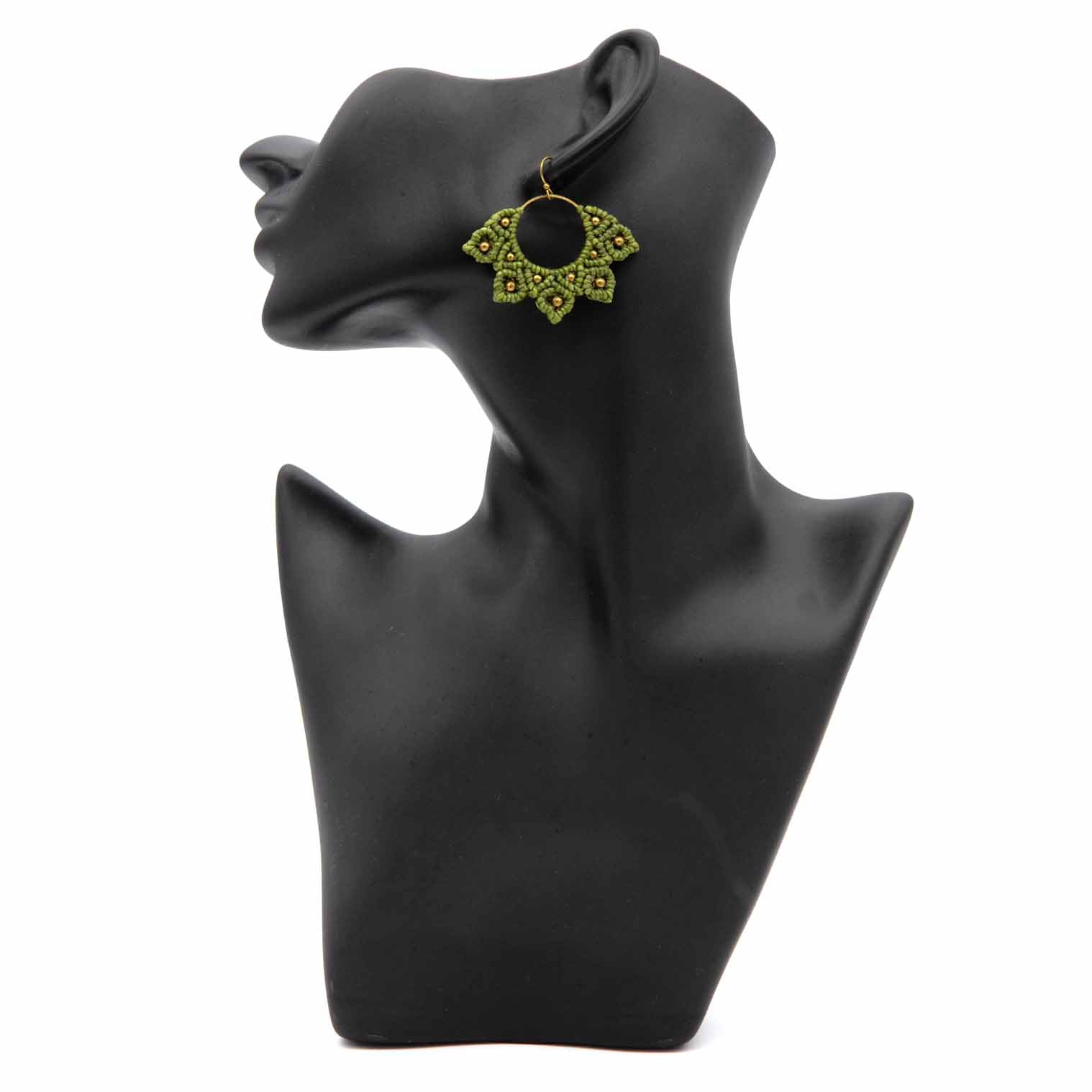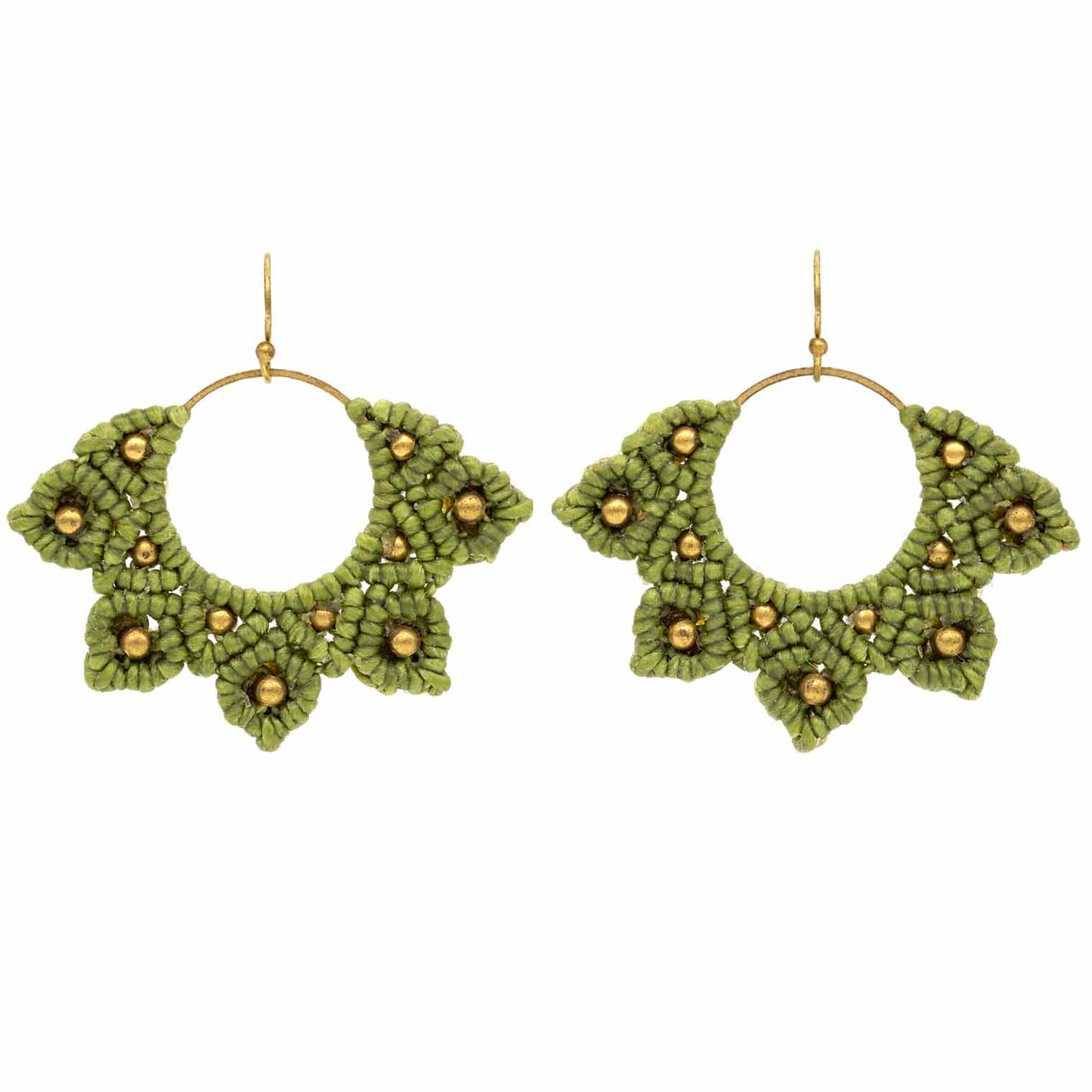 Knotted Cotton Drop Hoop Mandala Earrings