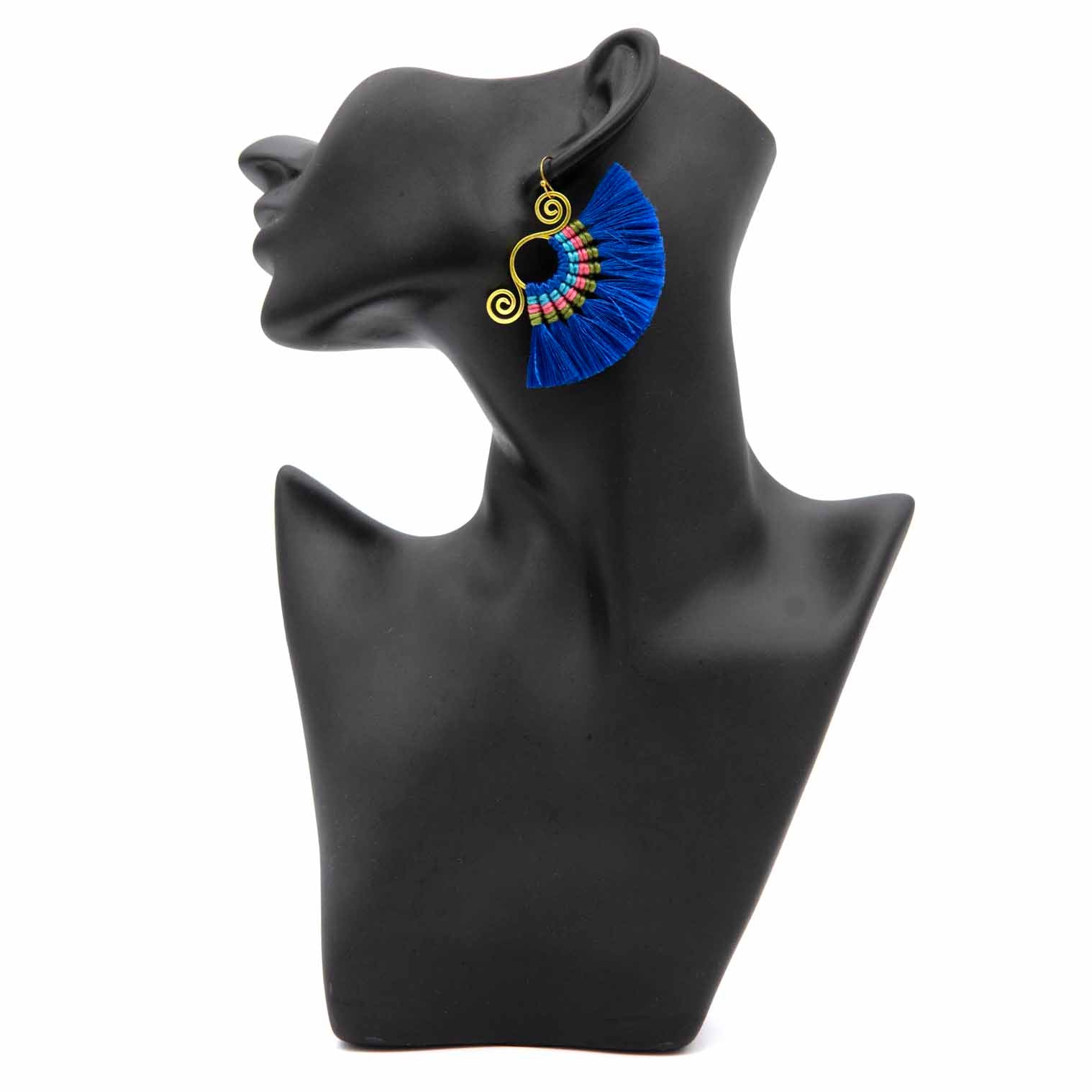 Macrame Tassel Earrings - Blue