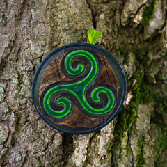 The triskelion is a symbol of Celtic origin, and literally translates as "three-legs" in Greek. It represents constant motion or action. This mini plaque has a handy hook for easy hanging.