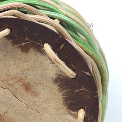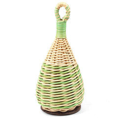 Our caxixi shakers are made by filling a woven rattan basket with seeds and attaching a smooth coconut plate to the bottom. These versatile shakers are then played by either shaking them on their sides so that the seeds hit the basket for a soft sound or vertically, up and down, so that the seeds hit the coconut plate for a harder, almost metallic sound.