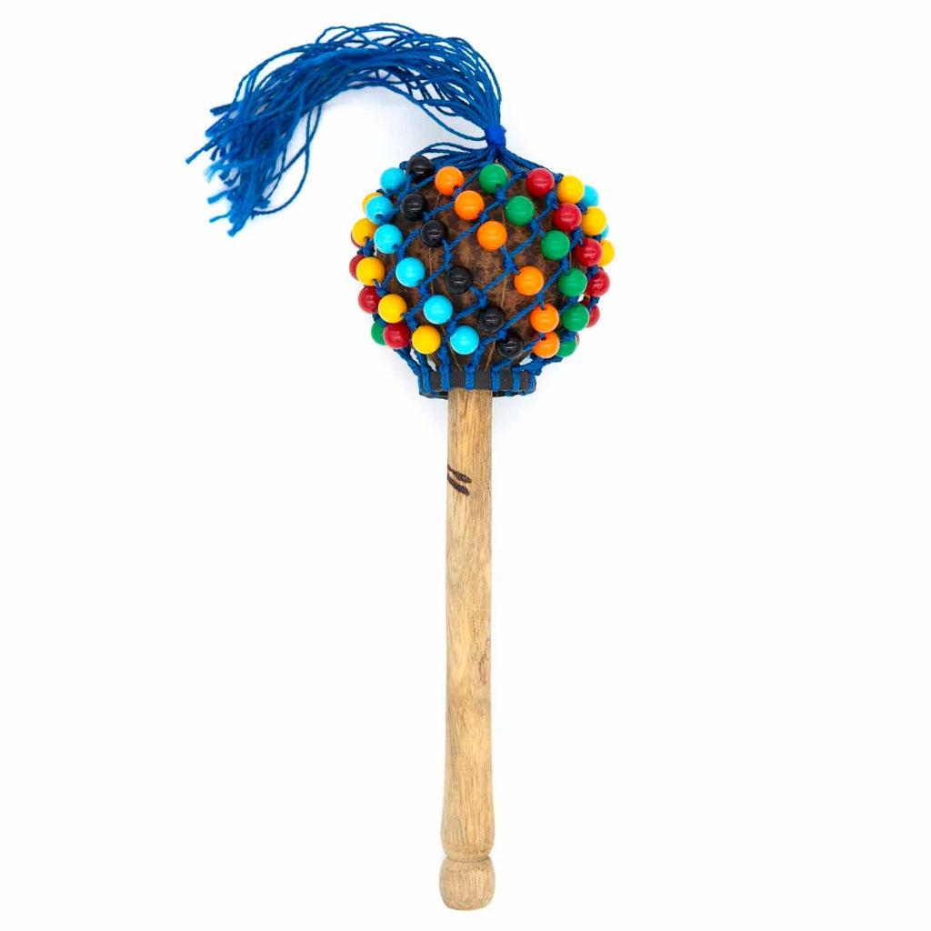 Made in Ghana these amazing instruments are made from a Televi nut encased by a net covered with dozens of colourful beads. They are usually played held by the neck and percussed between the hand and leg, emitting a lovely 'chichichi' sound that goes brilliantly with djembe music.