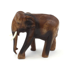 This wooden elephant was hand carved by a small family group in Thailand from acacia wood.