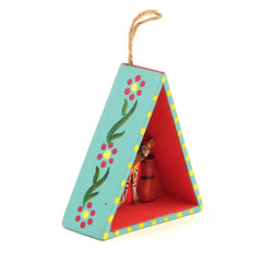 Handmade by skilled artisans in Peru, this retablo is a testament to the dedication and craftsmanship passed down through generations. As a Fair Trade product, it supports ethical practices and ensures that the creators receive fair compensation for their artistry. Embrace the spirit of music and tradition with this unique piece.