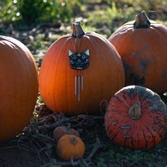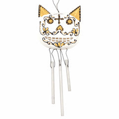 This delightful Candy Cat Chime features a striking feline face, beautifully decorated in colourful candy skull-style patterns. The bold lines and vibrant details give the cat a mischievous yet enchanting character, while the trio of chimes hanging below create a gentle, melodic sound—perfect for adding a touch of magic to your home and a playful accent to Halloween parties.