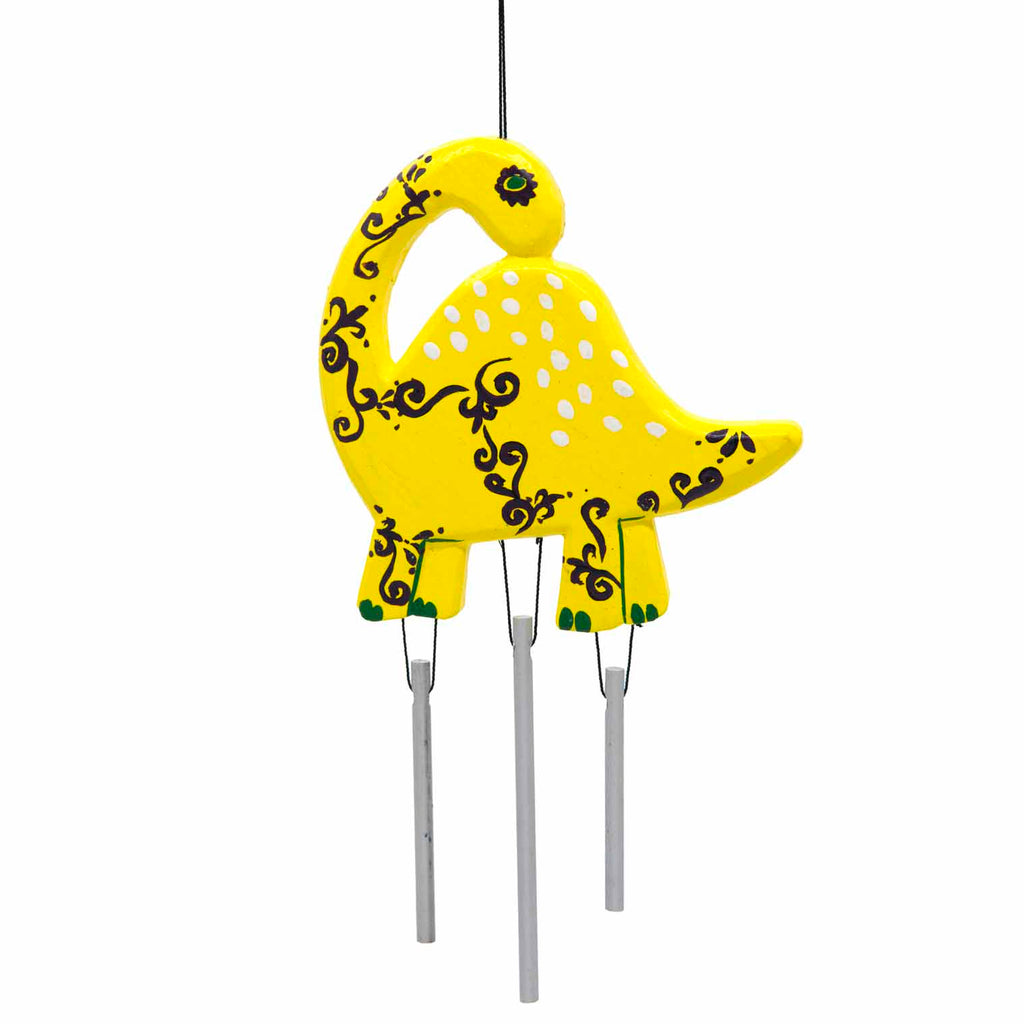 This delightful Diplodocus Chime brings a touch of prehistoric charm to your halloween decor! Hand-carved into the shape of a friendly dinosaur and adorned with vibrant candy skull-style patterns and featuring three chimes, it adds a whimsical touch to your party.