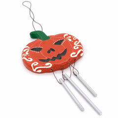 This cheerful Spooky Pumpkin Chime brings Halloween charm! Adorned in vibrant Día de Muertos patterns, its candy skull-style designs adorn the surface, and three tinkling chimes hang beneath. It is perfect for everyday delight and a cute addition to Halloween parties.