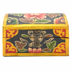 Decorative chests and boxes are a staple of Himalayan households where they serve both functional and symbolic purposes. The motifs painted on this piece draw on traditional Buddhist and folk art, bringing a gentle, earthy charm and spiritual resonance to your home.