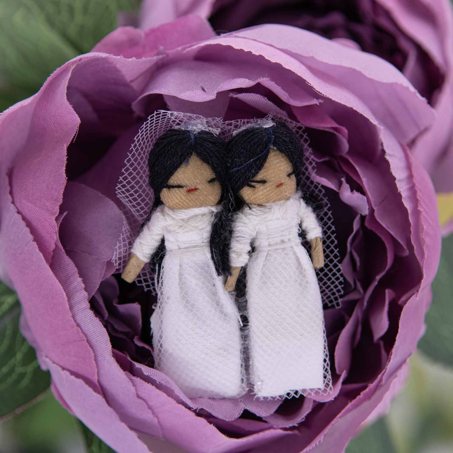 These two are stuck on each other - literally! This lovely pair of worry people brides are made by hand in Guatemala. Would make a great little wedding gift, perhaps for a case of pre-nuptial nerves. Each couple has a magnetised reverse.