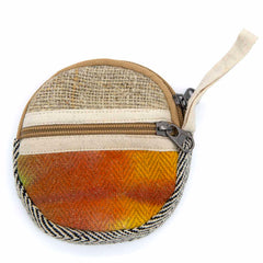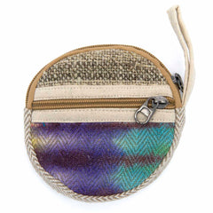 A great size purse with two zipped compartments and a handy hanging loop so it can be attached to your bag for extra security - and so you don't forget it! It is made of tactile materials - jute and gheri - and has an attractive overdyed tie dye effect.