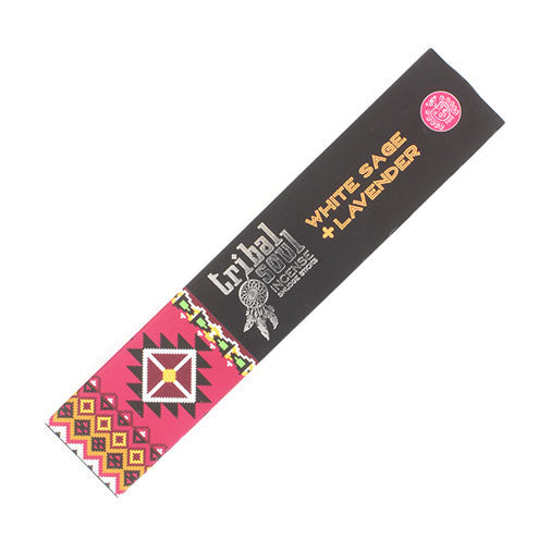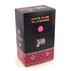 Tribal Soul White Sage and Lavender Incense: "White Sage has been considered sacred by Native Americans for thousands of years and has been used to drive away bad energy, cleanse and purify persons and places through the technique of smudging. Lavender, well known for its medicinal qualities as well as its powers of protection and cleansing, symbolizes purity and cleanliness. It works to soothe and calm people by restoring emotional balance. It opens the heart chakra and attracts loving energy. Fresh earthy white sage and herbaceous Lavender combine in these sticks for a highly aromatic experience, creating a peaceful, harmonious atmosphere and enabling a greater ease of relaxation.