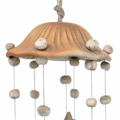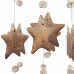 This beautiful ceramic mobile windchime features five strings of natural unglazed stars, moons and suns. Together they create a stunning tinkling sound when the wind blows.