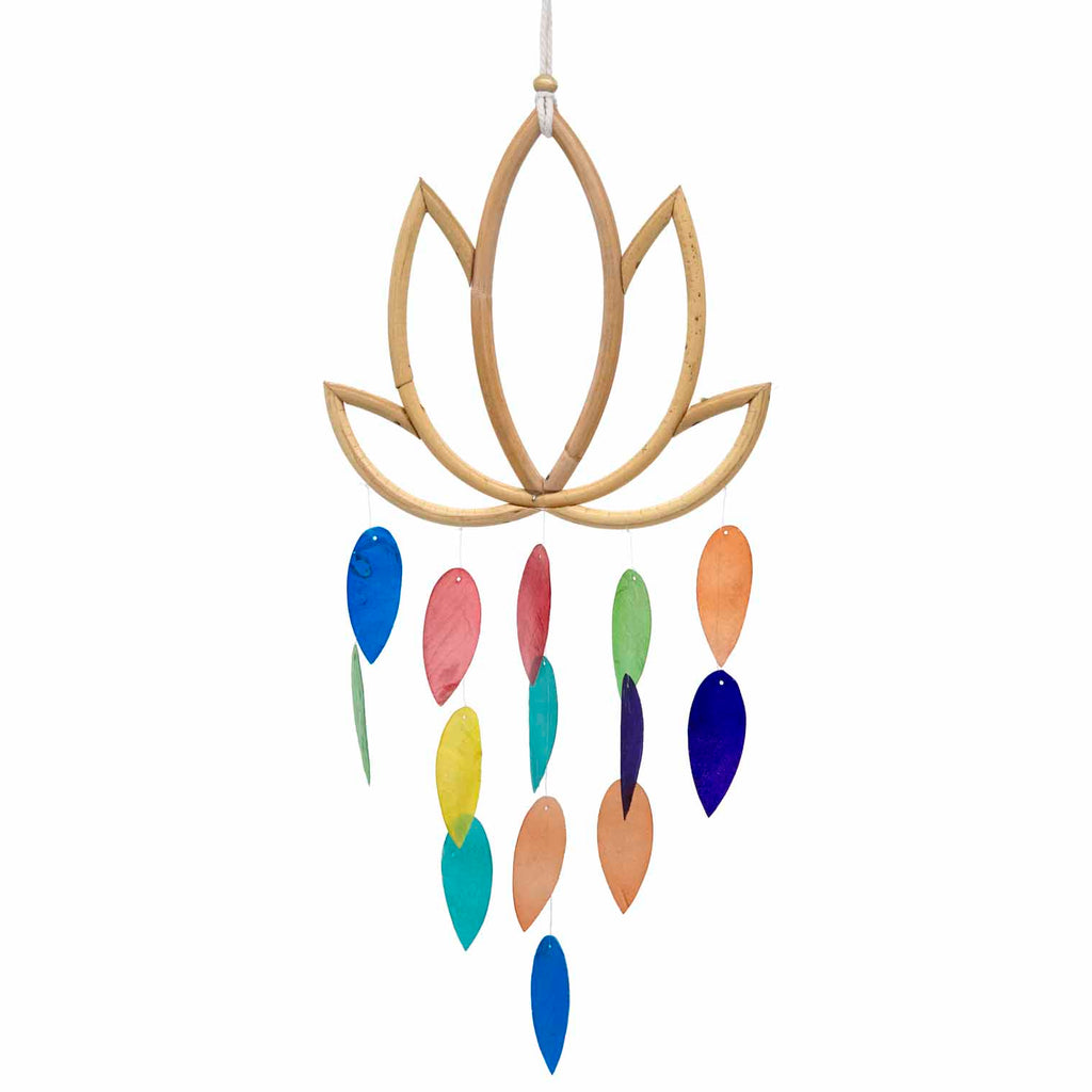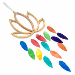 The pretty leaves of this delicate hanging decoration are made from coloured shell and are hung from bamboo lotus flower. And the great thing about this is two-in-one - not only does it make a great alternative to the traditional suncatcher, but it also gives a delicate tinkling sound so is an ideal windchime as well!