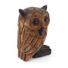 Each owl is skilfully shaped and polished by artisans using traditional carving techniques passed down through generations. The warm tones and natural grain of Rain Tree wood give every piece a unique, organic character.