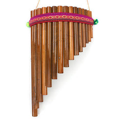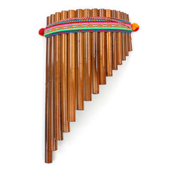 These beautiful sounding instruments, sometimes known as Zampoña, are a traditional folk instrument from Peru. By blowing across the top of any of the fifteen pipes, a pleasing tone is produced.