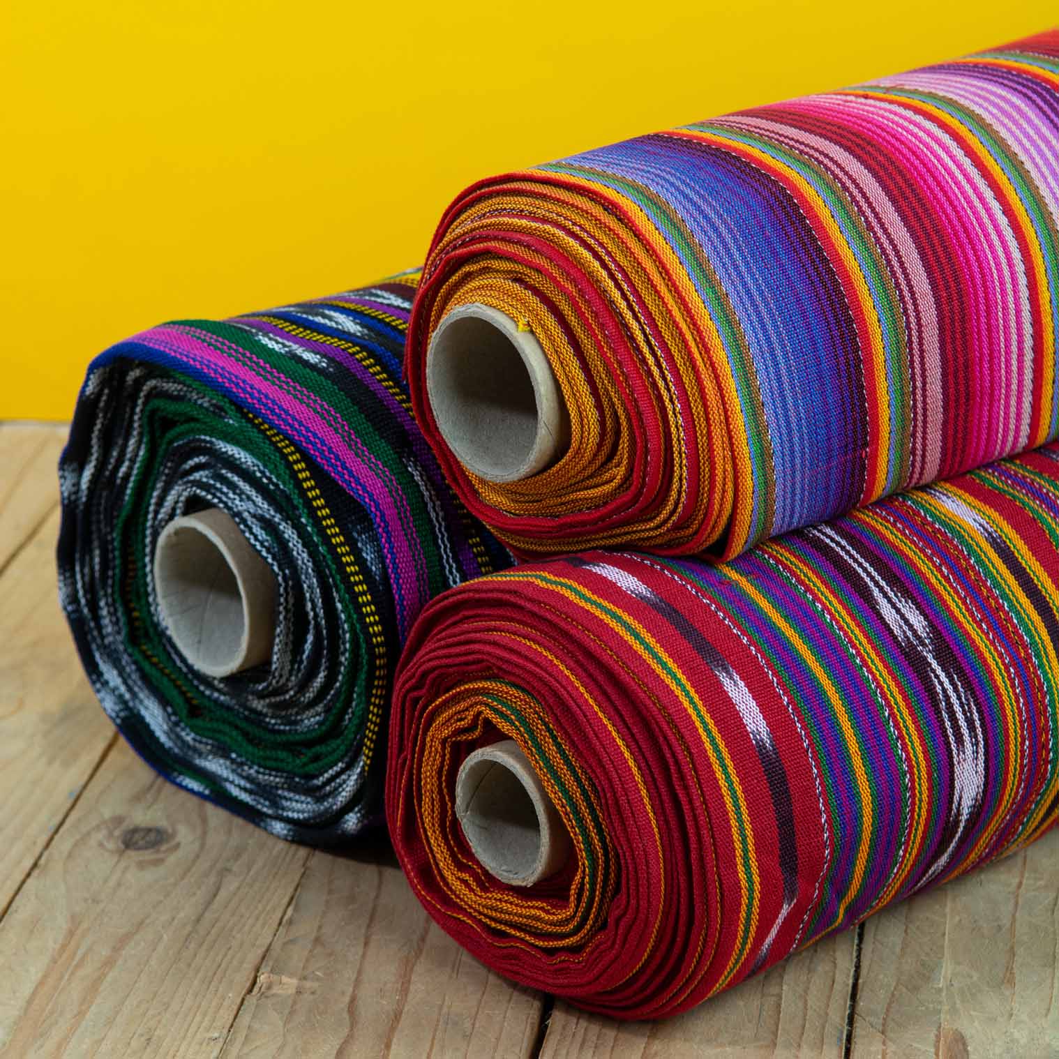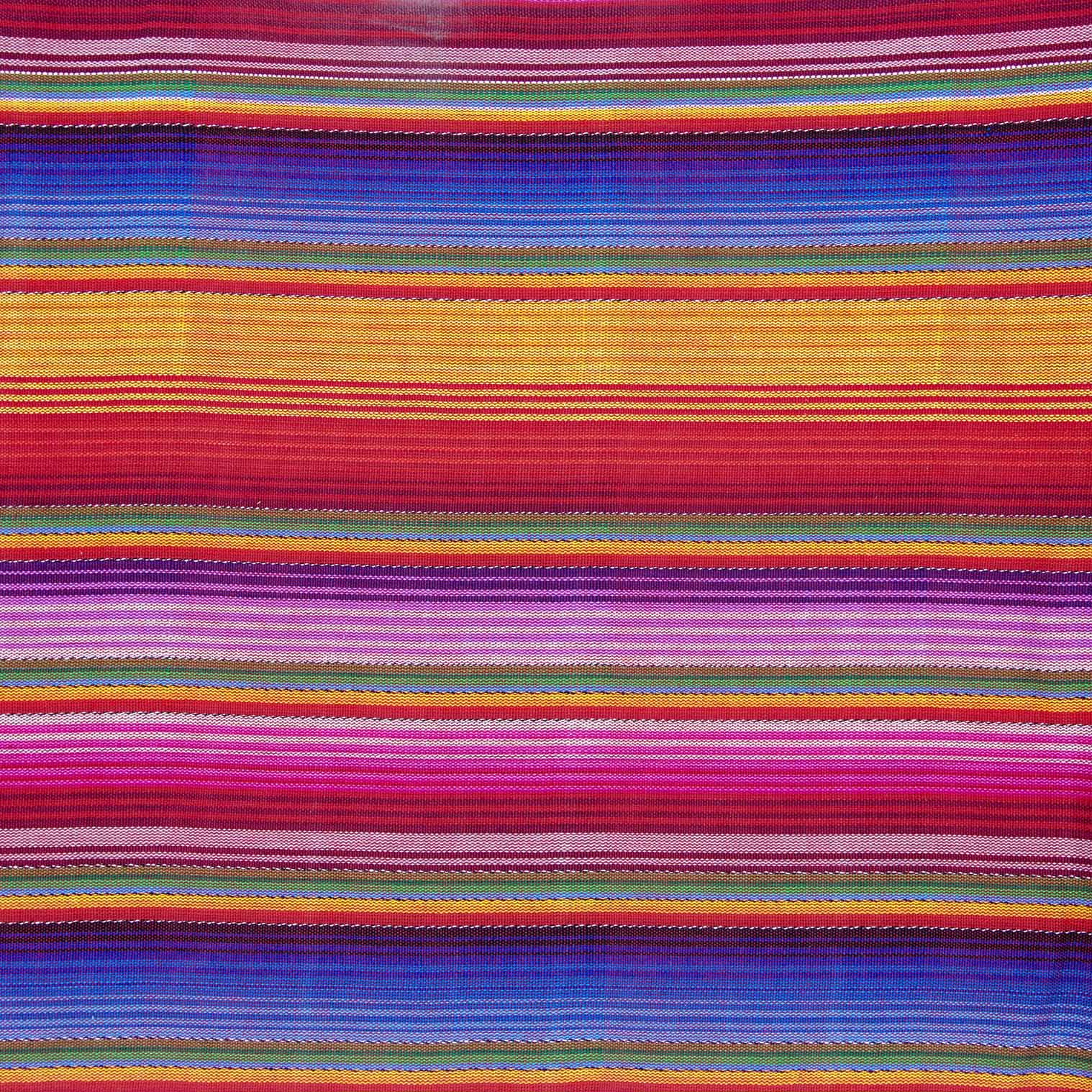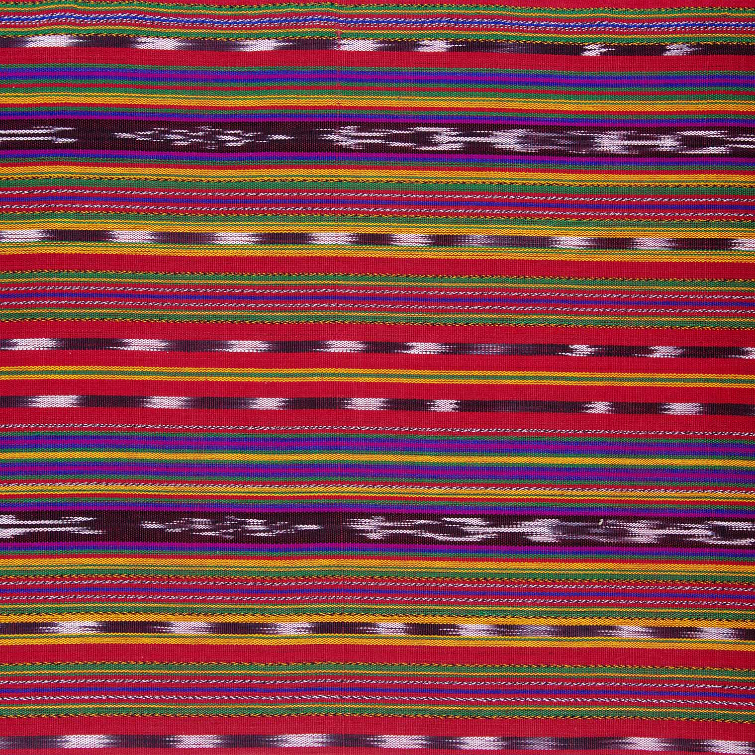 This wonderfully colourful style of fabric is known in Guatemala as 'Jaspe. ' It uses a traditional and complex dye resist method and is woven on back-strap looms. This kind of material is often used to make the 'cortes', a kind of traditional Guatemalan skirt. Perfect for a craft or home decor project, this material is sold by the metre.
