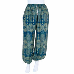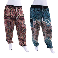 Lightweight and printed in some vividly bright colours and patterns, these rayon trousers are incredibly comfortable and are perfect for hot, sunny days. These trousers come in a variety of designs and have elasticated ankles and drawstring waists for comfort. Please note that the fabric used to make our elephant print range varies considerably between shipments and the product may not exactly match the image.