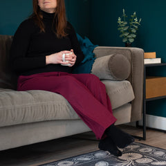 These loose fitting trousers are super comfortable and ideal for relaxing about the house. They have an elasticated waist with drawstring and would also make great yoga trousers.