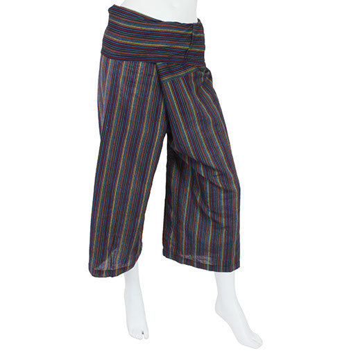 These traditional fisherman trousers are folded and tied around the waist and as such fit all sizes. Their loose fit in lightweight cotton makes them extremely comfortable and they are very popular for yoga and meditation. Available in three colours and completed with a matching bag and clear instructions on how to fold and tie correctly.