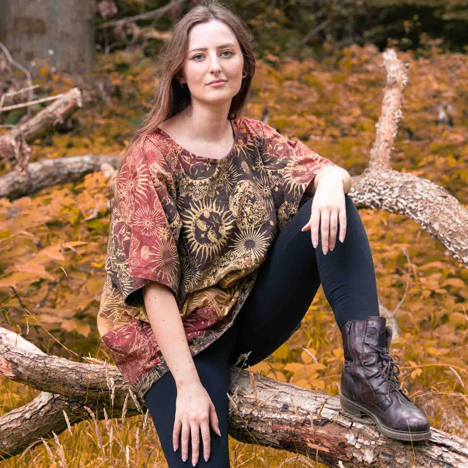 Handmade in Nepal by our Fair Trade partners, this smock-style top supports artisan makers and traditional textile methods. It’s a celebration of cosmic beauty and craft heritage, designed for comfort, movement, and self-expression. Ideal as a casual everyday piece or layered for an artistic, bohemian look.