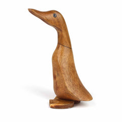 An elegant wood carving of a duckling, made from bamboo root. The carver decides on the shape and position of the duck from looking at the shape of the un-carved root, making each of these ducks unique.