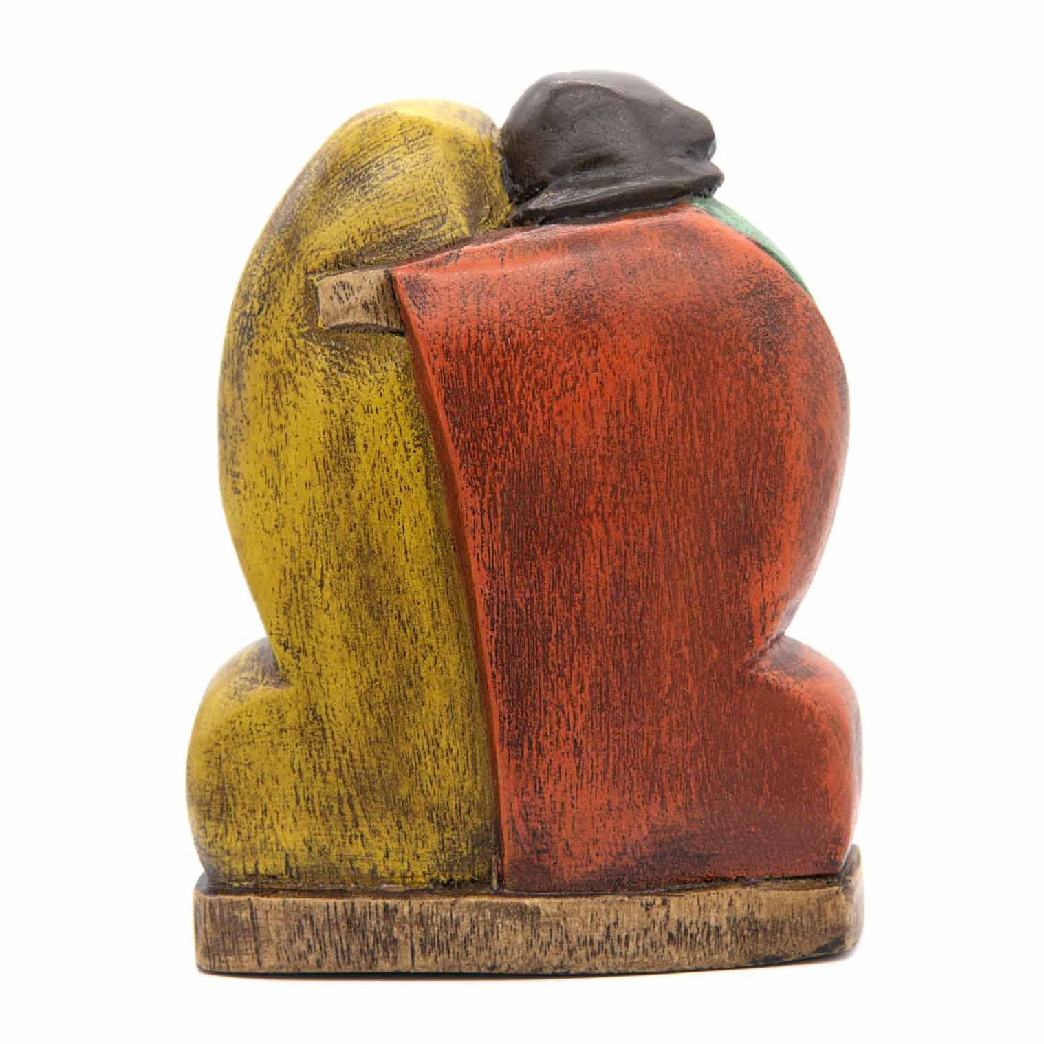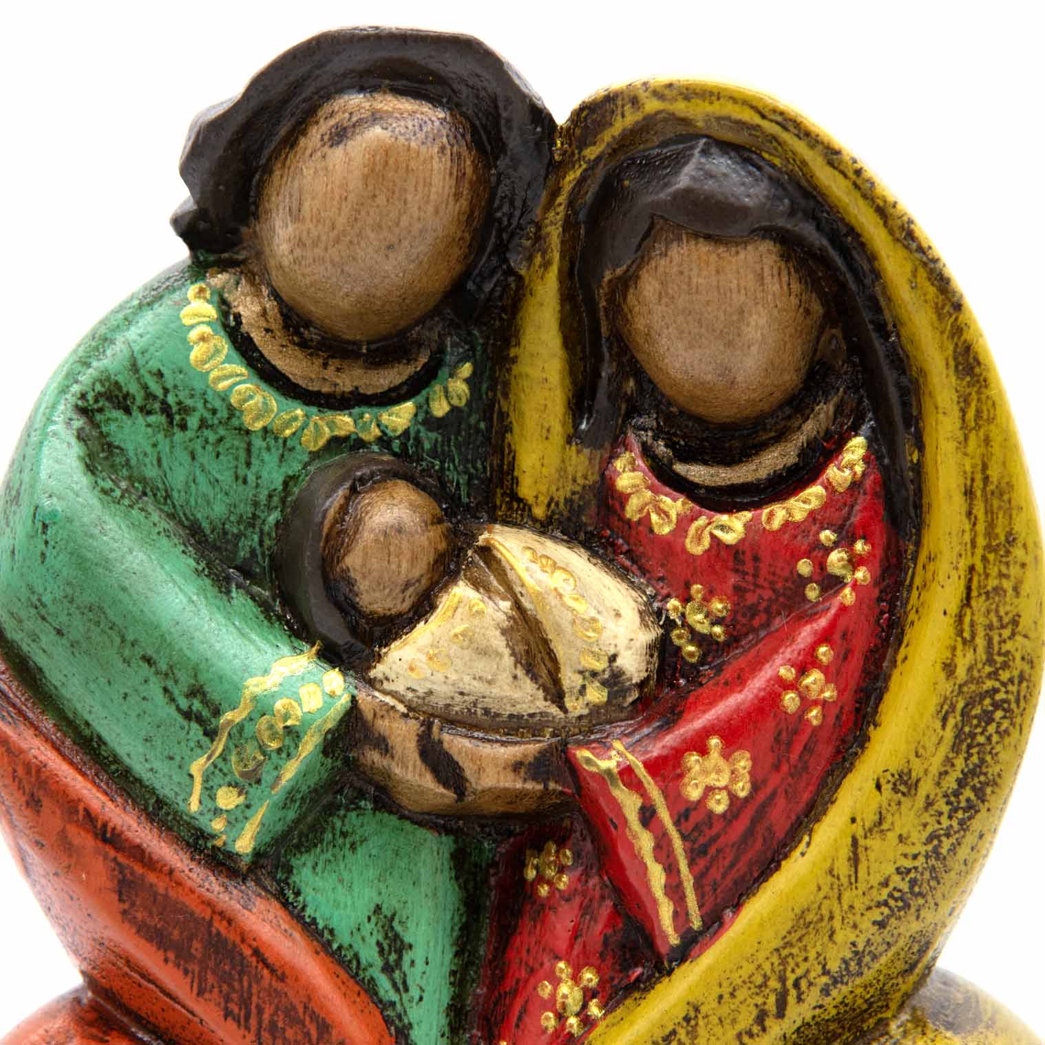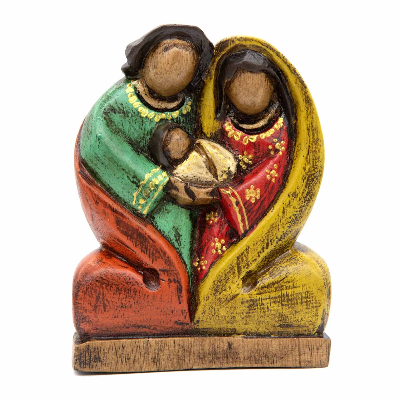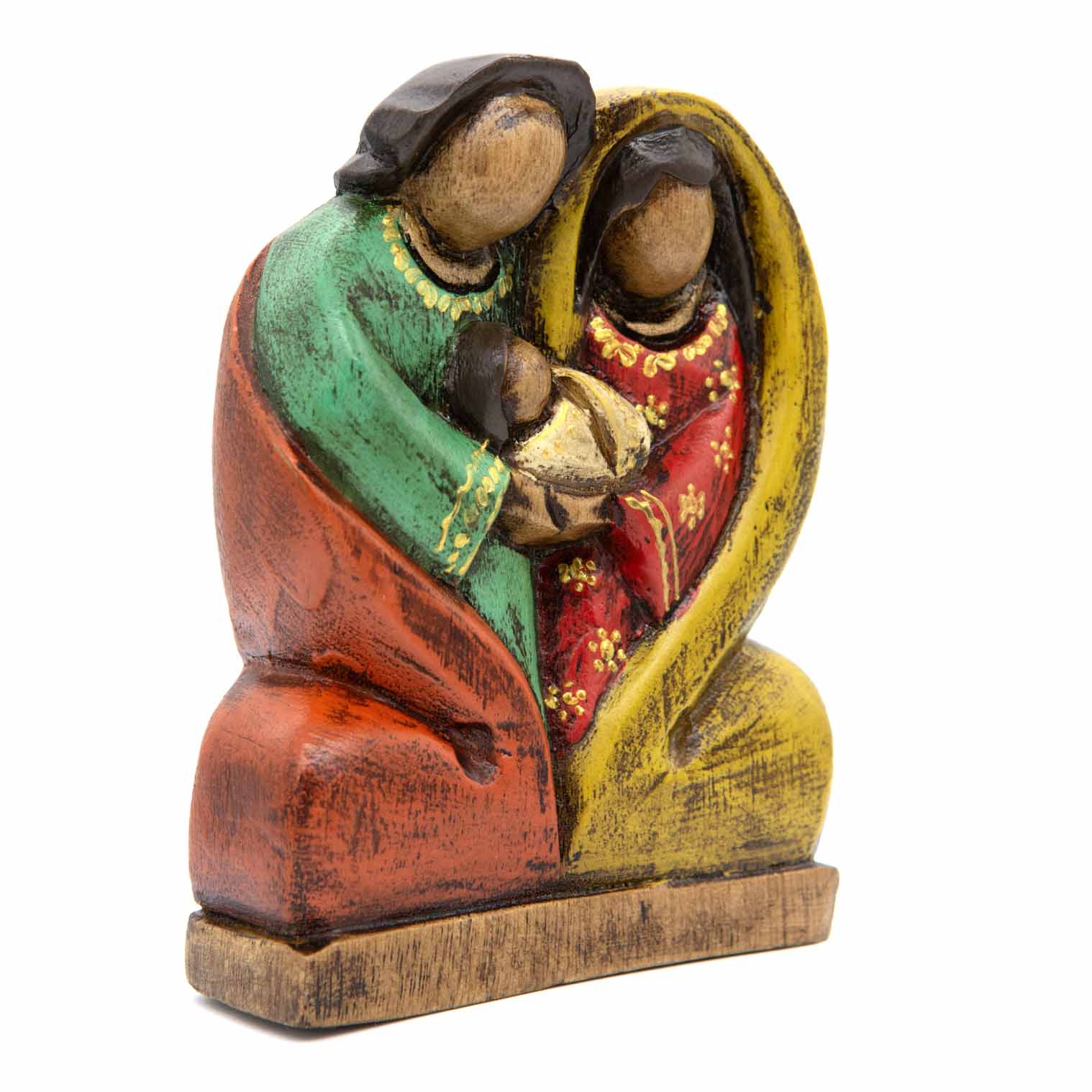 This beautiful wooden carving depicts a serene Holy Family scene, radiating warmth and unity through its hand-painted details and soft curves. The smooth, flowing forms and vivid colours bring a sense of peace and devotion, making it a striking piece for the festive season or a year-round symbol of love and togetherness.