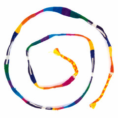 Jazz up your Sunday best with these vibrant woven belts! Each has been created from an array of colours and embroidered with white crosses. They also have fun tassels and are easy to tie.