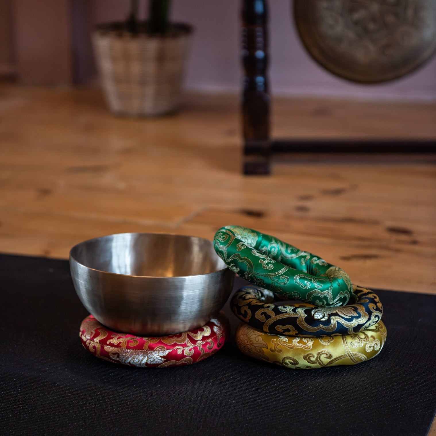 A stuffed brocade ring ideal for displaying singing bowls and keeping them stable. The design allows a range of bowls to sit securely but is best for medium bowls. Available in a variety of bold colours.